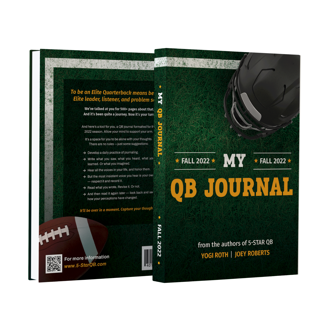 To be an Elite Quarterback means being an Elite leader, listener, and problem solver. We’ve talked at you for 500+ pages about that. And it’s been quite a journey. Now it’s your turn.And here’s a tool for you, a QB journal formatted for the 2022 season. Allow your mind to support your arm.It’s a space for you to be alone and capture your thoughts.